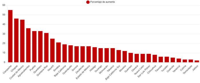 La tasa de informalidad laboral fue de 54.8 por ciento, un incremento de 0.6 por ciento respecto a la tasa observada un año atrás.