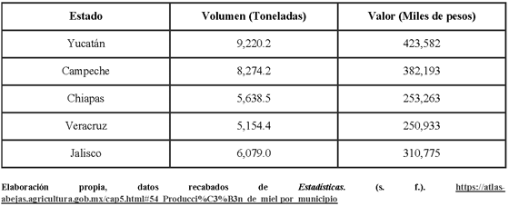 11 Servicio de Información Agroalimentaria y Pesquera (SIAP). (2024). Producción de miel por entidad federativa 2024 . Secretaría de Agricultura y Desarrollo Rural. Recuperado de https://www.gob.mx/siap