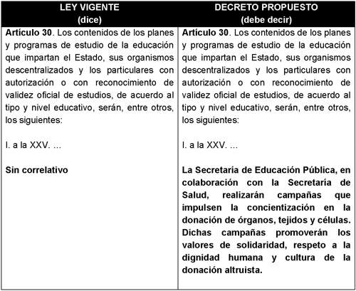 Por lo anteriormente expuesto, y con el objeto de mostrar de manera más clara las modificaciones que se pretende llevar a cabo en la referida Ley General de Educación, se presenta el siguiente cuadro: