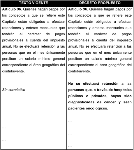 Por su parte, la exención del impuesto sobre la renta para los salarios de pacientes oncológicos constituye un mecanismo de protección directa que permitirá a estos ciudadanos disponer de la totalidad de sus ingresos para enfrentar su enfermedad.