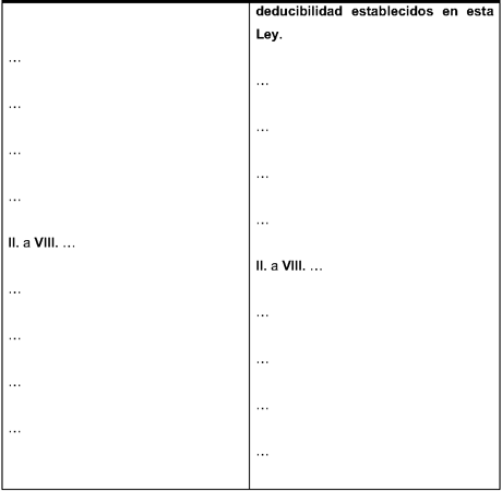 Por lo expuesto, y con el objeto de mostrar de manera más clara las modificaciones que se pretende llevar a cabo en la Ley del Impuesto sobre la Renta, se presenta el siguiente cuadro: