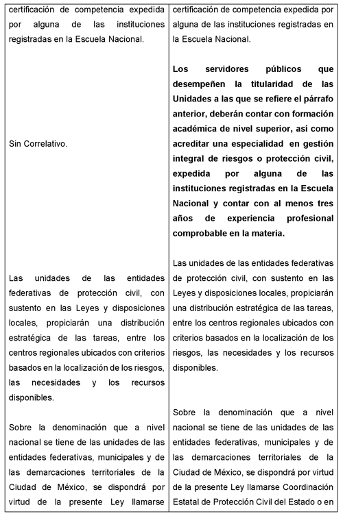Los servidores públicos que desempeñen la titularidad de las Unidades a las que se refiere el párrafo anterior, deberán contar con formación académica de nivel superior, así como acreditar una especialidad en gestión integral de riesgos o protección civil, expedida por alguna de las instituciones registradas en la Escuela Nacional y contar con al menos tres años de experiencia profesional comprobable en la materia.