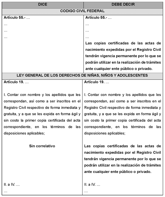 En consecuencia, el objetivo de la presente iniciativa es terminar con la práctica discrecional de entes públicos y privados que solicitan actas de nacimiento con cierta vigencia para efectuar determinados trámites porque vulnera el derecho a la identidad de los mexicanos.