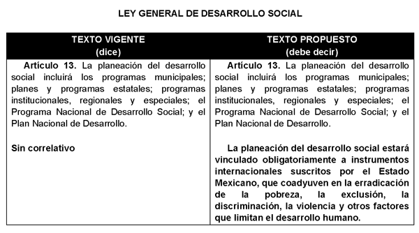 Decreto por el que se adiciona un segundo párrafo al artículo 13 de la Ley General de Desarrollo Social, en materia de instrumentos internacionales