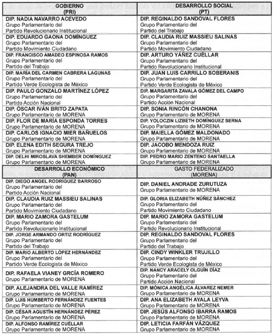 - Diputado Arturo Olivares Cerda, integrante de la Comisión y presidente de la Comisión de Seguridad Social (Morena)
