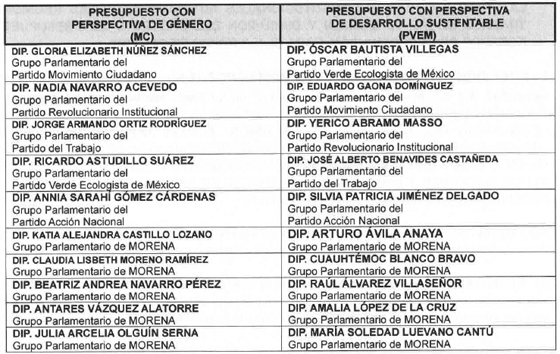 Diputados: Adasa Saray Vázquez, Alejandra del Valle Ramírez, Bertha Osorio Ferral, Deliamaria González Flandez, Diana Karina Barreras Samaniego, Elizabeth Martínez Álvarez, Karina Isabel Martínez Montaño, Kenia Gisell Muñiz Cabrera, María Fátima García León, María Guadalupe Morales Rubio, Ofelia Socorro Jasso Nieto.