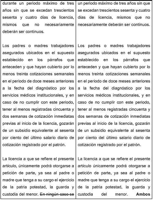 Por lo anteriormente expuesto, y con el objeto de mostrar de manera más clara las modificaciones que se pretende llevar a cabo en la Ley del Seguro Social, se presenta el siguiente cuadro: