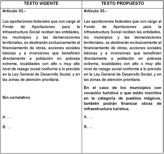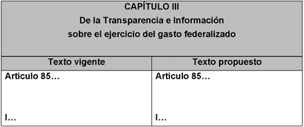 Por lo antes expuesto y para mayor claridad, se integra el siguiente cuadro comparativo de la propuesta:
