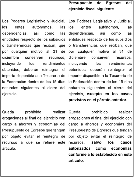 Los Poderes Legislativo y Judicial, los entes autónomos, las dependencias, así como las entidades respecto de los subsidios o transferencias que reciban, que por cualquier motivo al 31 de diciembre conserven recursos, incluyendo los rendimientos obtenidos, deberán reintegrar el importe disponible a la Tesorería de la Federación dentro de los 15 días naturales siguientes al cierre del ejercicio, excepto en los casos previstos en el párrafo anterior.