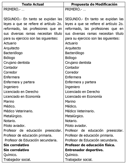 Segundo. En tanto se expidan las leyes a que se refiere el artículo 2o. reformado, las profesiones que en sus diversas ramas necesitan título para su ejercicio son las siguientes: