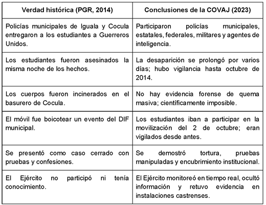 El Informe de la Presidencia de la Comisión para la Verdad y el Acceso a la Justicia en el caso Ayotzinapa (COVAJ) concluye que3 :