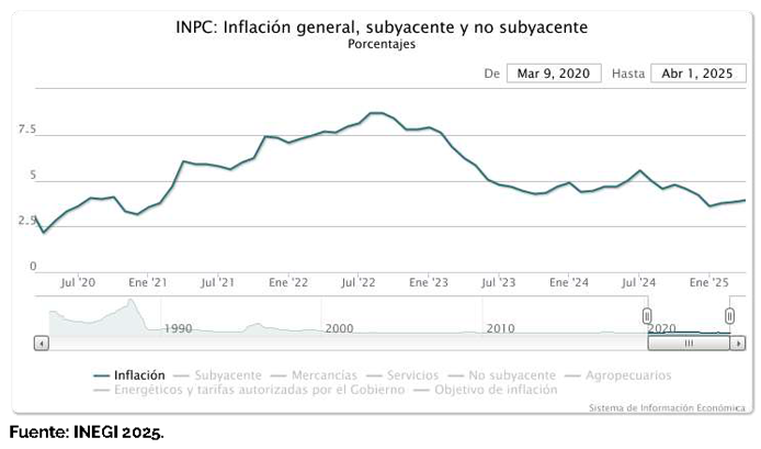 Estas condiciones se han ido agravando debido al incremento constante de la inflación durante los últimos años. De acuerdo con el Índice Nacional de Precios publicado por el Inegi, desde el 9 de marzo de 2020, fecha de la publicación del decreto modificatorio que creó el organismo público descentralizado denominado Lotería Nacional, hasta la fecha la inflación ha incrementado de manera constante, alcanzando niveles alarmantes cercanos al 9 por ciento en periodos como agosto-septiembre de 2022, como se muestra en la siguiente gráfica: