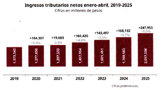 3 Tomado de https://www.gob.mx/sat/prensa/recaudacion-record-los-primeros-cuatro-me ses-del-ano-024-2025?idiom=es el 30 de agosto del 2025.