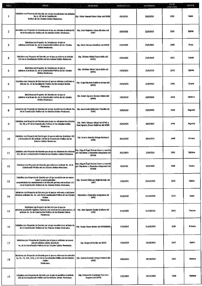 Anexo VII Comunicación de la Presidencia de la Mesa Directiva, por la informa el turno que le corresponde a las iniciativas con proyecto de decreto y a las proposiciones con punto de acuerdo registradas en el orden del día del miércoles 24 de septiembre de 2025, de conformidad con los artículos 100, numeral 1, y 102, numeral 3, del Reglamento de la Cámara de Diputados