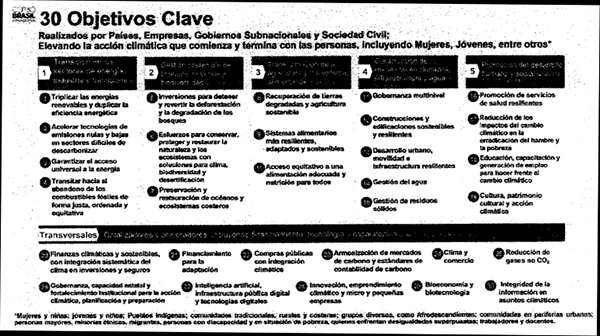 El objetivo primordial es lograr la implementación acelerada de los acuerdos climáticos, al tiempo que se mantenga vivo la meta de limitar el aumento de la temperatura global a 1.5ºC por encima de los niveles preindustriales.