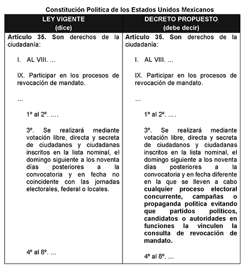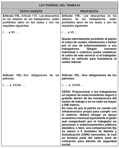 Cuadro comparativo del texto vigente con la propuesta de modificación y adición