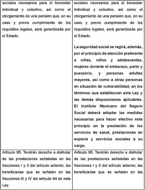 Niñas, niños, mujeres embarazadas y personas adultas mayores forman parte, de manera evidente, de esos grupos que requieren un trato diferenciado para alcanzar una igualdad real en el ejercicio de sus derechos. La presente iniciativa se inscribe justamente en esa lógica: transitar de una visión meramente formal de la igualdad a una concepción de igualdad sustantiva, en la que la Ley del Seguro Social reconozca explícitamente la atención preferente a estos grupos en la prestación de servicios a cargo del Instituto Mexicano del Seguro Social (IMSS).