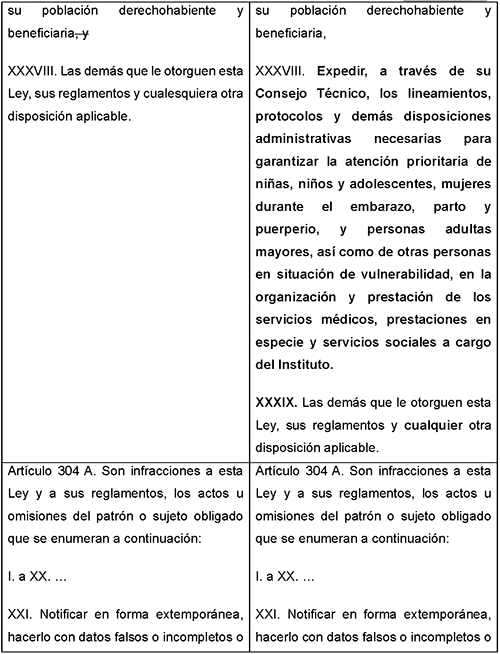 Para entender mejor el alcance del proyecto, siguientes comparativos exponen de manera específica las propuestas de modificación: