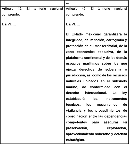 Esta reforma no pretende alterar el equilibrio diplomático ni redefinir espacios jurisdiccionales; su propósito es fortalecer la capacidad del Estado mexicano para ejercer los derechos que el derecho internacional ya le reconoce, proteger los recursos estratégicos del subsuelo marino, garantizar la actualización permanente de la cartografía oceánica, blindar institucionalmente la toponimia y la integridad territorial frente a expresiones unilaterales de terceros Estados y crear bases constitucionales modernas para la coordinación interinstitucional. Se trata, en suma, de una reforma orientada a reforzar la soberanía mediante la técnica, la ciencia y la precisión jurídica.