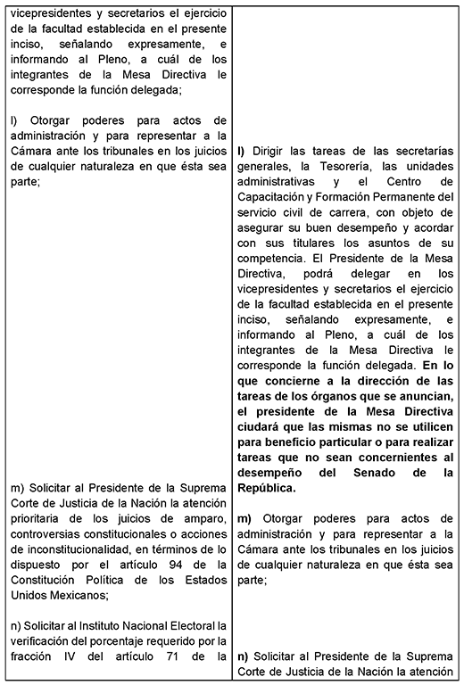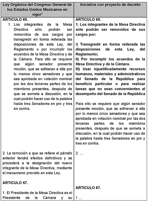 Además, se propone la remoción de cualquiera de los integrantes de la Mesa Directiva del Senado de la República si: