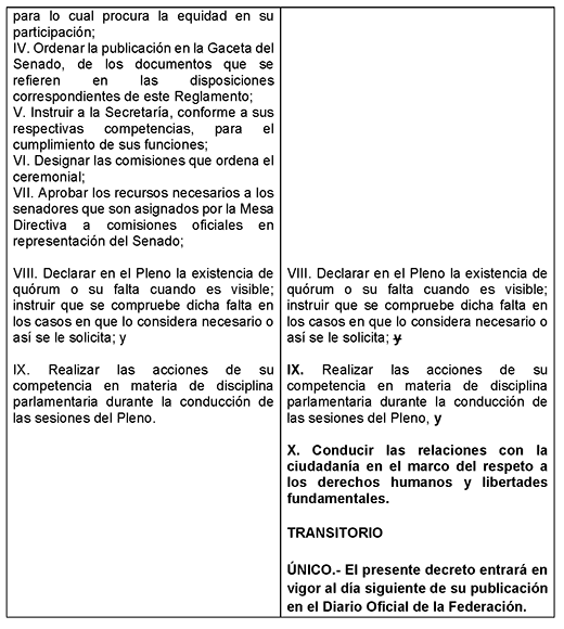 Por lo anterior, la presente iniciativa con proyecto de decreto propone reformar la Ley Orgánica del Congreso General de los Estados Unidos Mexicanos y el Reglamento del Senado de la República con el objeto de que la Presidencia de la Cámara de Senadores: