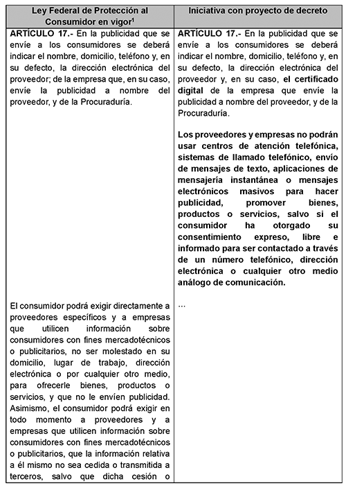 La propuesta de la iniciativa quedaría como se muestra a continuación:
