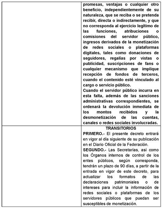 Las adiciones y reformas se exponen en el siguiente: