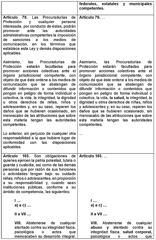 La presente iniciativa de reformas y adiciones a la Ley General de los Derechos de Niñas, Niños y Adolescentes busca fortalecer la protección integral de la infancia y la adolescencia en México particularmente sobre su salud física y corporal teniendo en cuenta el interés superior de la niñez, proponiéndose lo siguiente: