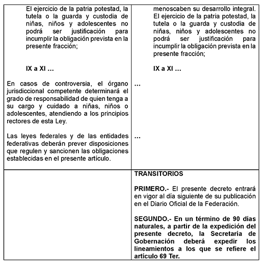 Decreto que reforma los artículos 50, 68, 70 y 103 y adiciona un artículo 69 ter a la Ley General de los Derechos de Niñas, Niños y Adolescentes