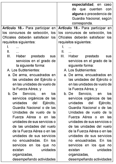 Artículo 18. Para participar en los concursos de selección, los Oficiales deberán satisfacer los requisitos siguientes: