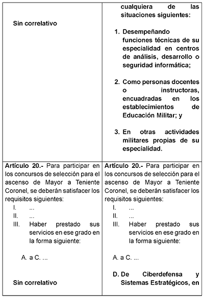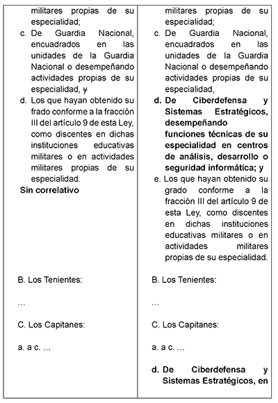 La actual ley en materia de ascensos y recompensas para el Ejército, Fuerza Aérea y Guardia Nacional, no ha sido actualizada para contemplar la gestión, retención y promoción del capital humano cuya especialización técnica, informática y cibernética es un componente indispensable para la protección del Estado frente a los nuevos desafíos digitales.