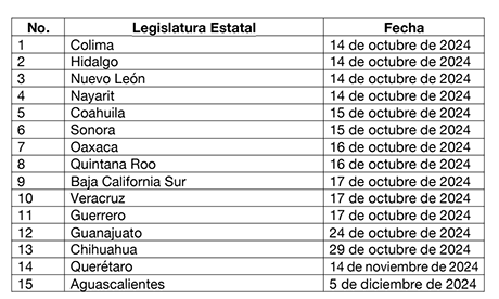 Sin embargo, de fuentes periodísticas y de información de los propios Congresos Estatales se sabe que desde el 14 de octubre de 2024 se han reunido los votos aprobatorios necesarios (17) para hacer el cómputo y la declaratoria de reforma constitucional, toda vez que las siguientes legislaturas también ya lo aprobaron: