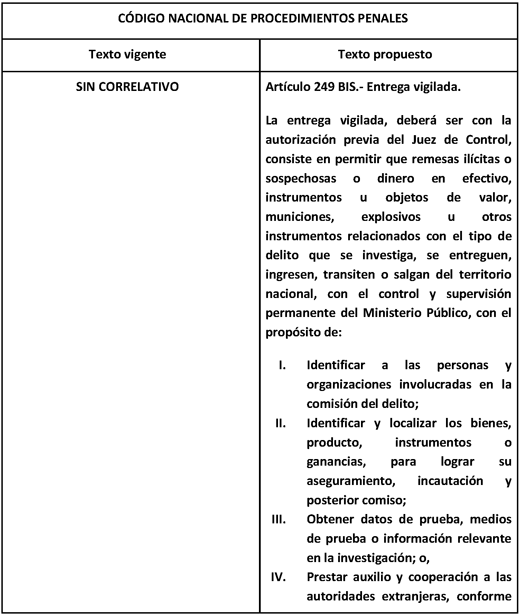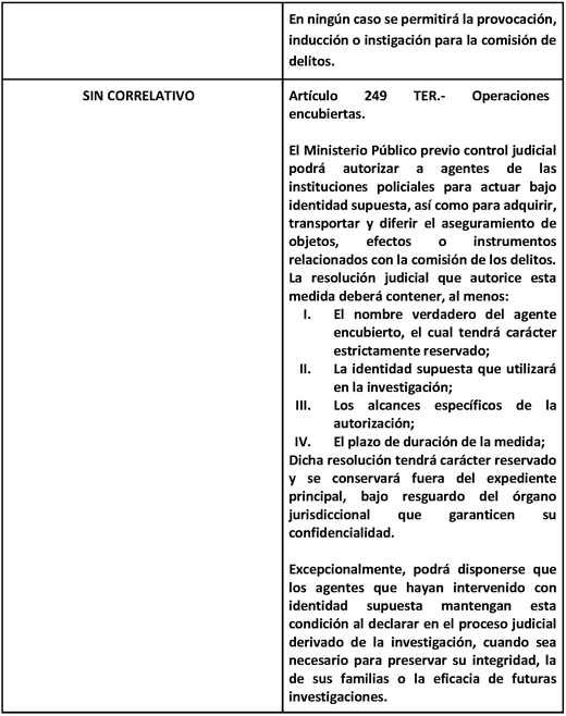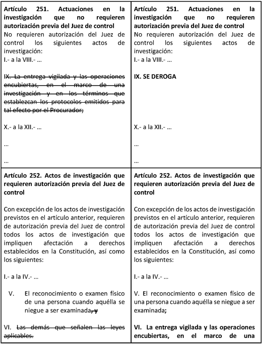 Decreto por el que se adicionan los artículos 249 Bis y 249 Ter, y se reforman los artículos 251 y 252 del Código Nacional de Procedimientos Penales, en materia de operaciones encubiertas y entregas vigiladas