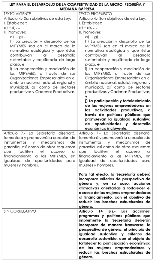Para un mayor entendimiento de lo que se propone, se presenta el siguiente cuadro comparativo: