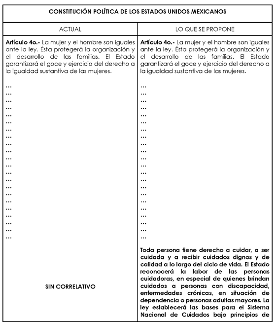 Decreto por el que se reforman los artículos 4o. y 73 de la Constitución Política de los Estados Unidos Mexicanos, en materia de reconocimiento de los derechos de las personas cuidadoras y del sistema nacional de cuidados