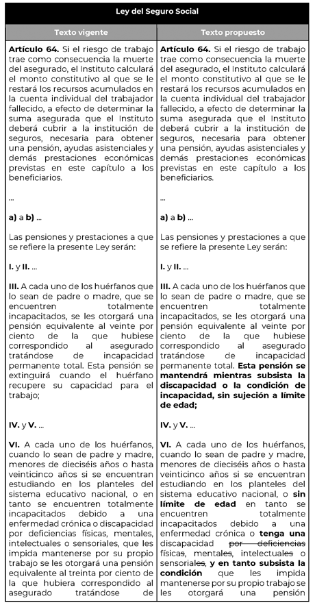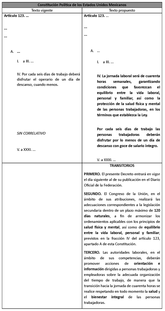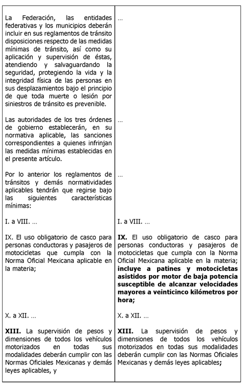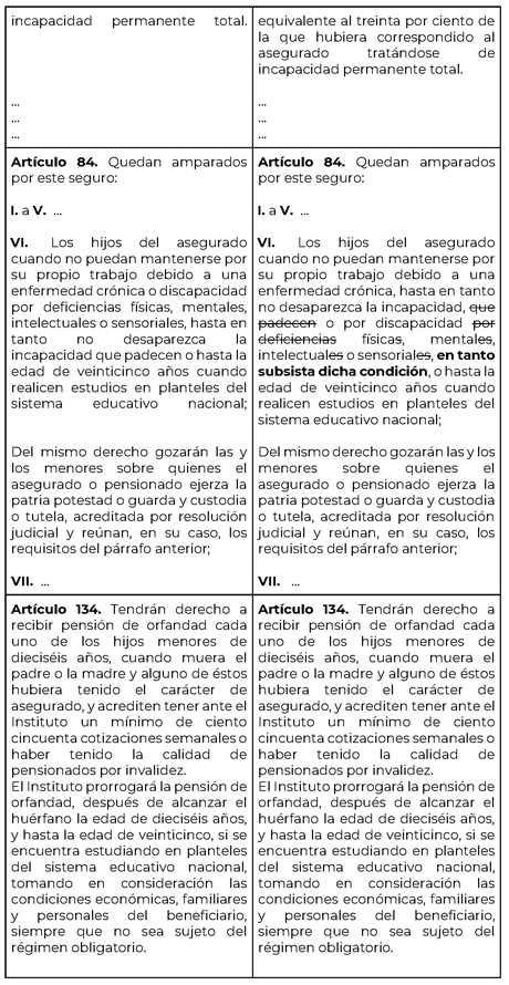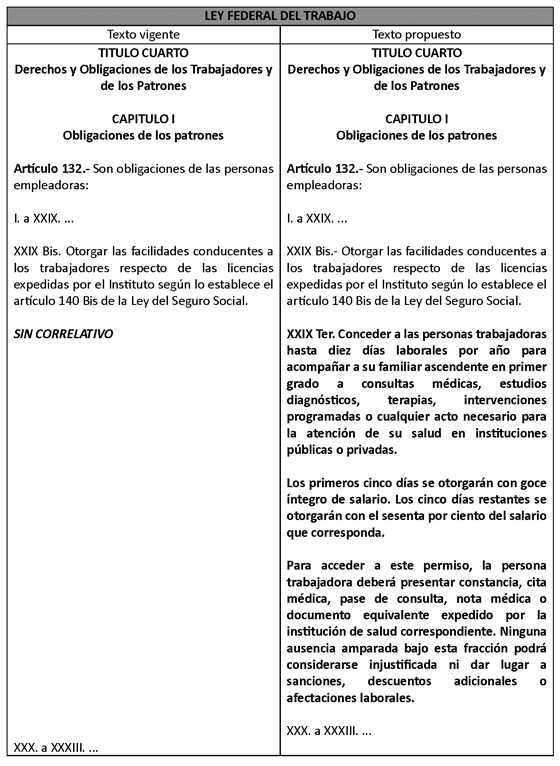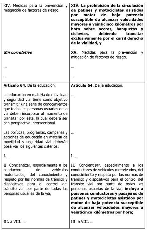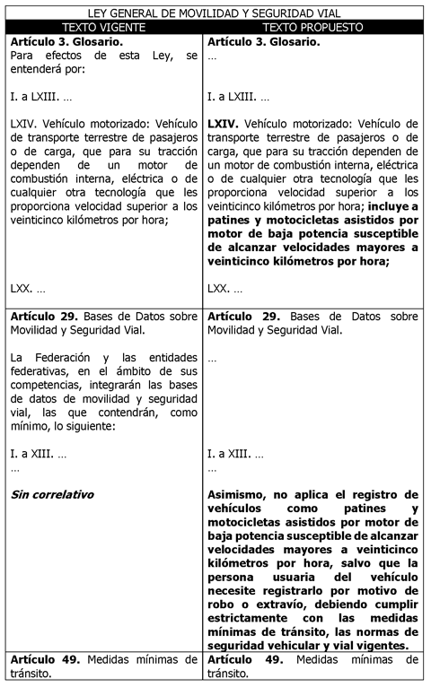 Para efecto de ilustrar las modificaciones propuestas, se presenta el siguiente cuadro comparativo: