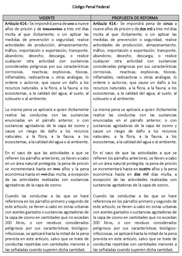 A través del siguiente cuadro comparativo se pueden observar las modificaciones propuestas al texto vigente: