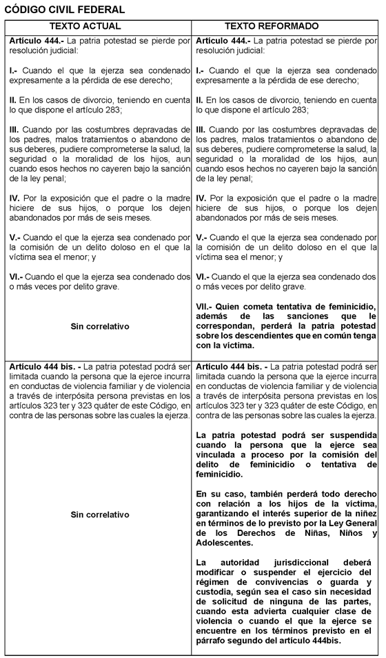 Único. Se adiciona una fracción VII al artículo 444 y se adicionan los párrafos, segundo, tercero y cuarto al artículo 44 Bis, del Código Civil Federal, para quedar como sigue: