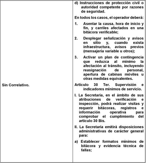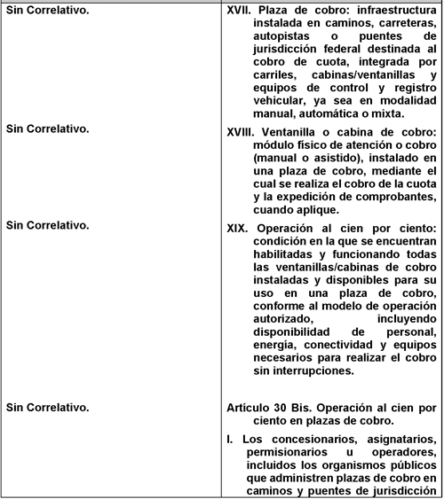 Artículo 30 Bis. Operación al cien por ciento en plazas de cobro.