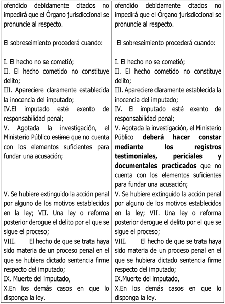 El Informe Anual de Actividades 2024 de la Fiscalía General de la República, muestra que 134 investigaciones fueron enviadas al archivo temporal; en espera de que se obtengan mayores datos que permitan establecer líneas de investigación, 1,392 carpetas donde la autoridad se abstuvo de investigar y en 1,165 decretó el sobreseimiento, entre muchas otras cifras contempladas a nivel nacional y local. Una vez que conocemos cifras de las instituciones de justicia en México, el porcentaje de posibilidades para que los Ministerios Públicos hayan realizado los actos de investigación idóneos y pertinentes para la integración de cada investigación, resulta mínimo, al tener la posibilidad de determinar el sobreseimiento en razón de no contar con elementos suficientes para fundar una acusación. Por lo que la expresión estime permite decisiones subjetivas del Ministerio Público, lo cual afecta la certeza jurídica. La reforma obliga a documentar actos de investigación realizados, estableciendo un estándar verificable y evaluable por el juez, la redacción vigente permite decisiones discrecionales que generan incertidumbre jurídica para las partes procesales. Por ello, se considera indispensable elevar el estándar de motivación del Ministerio Público, exigiendo que deje constancia fehaciente de los actos de investigación practicados.
