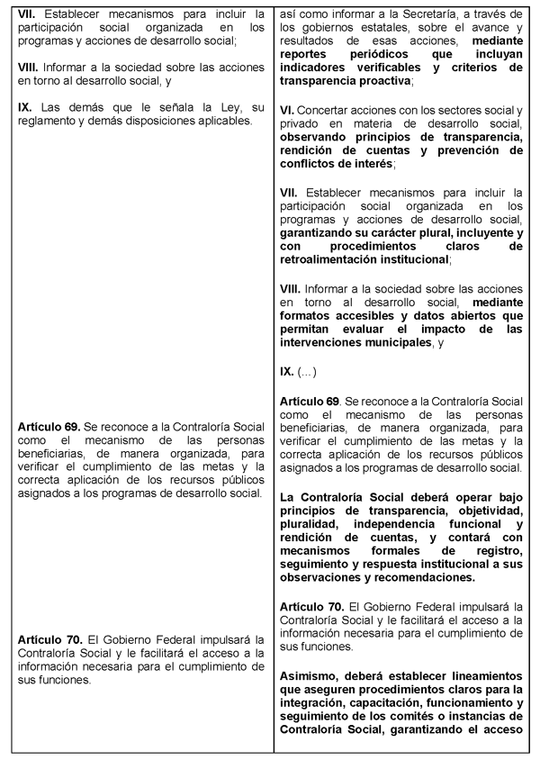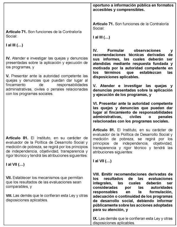 Artículo Único. Se adicionan dos párrafos al artículo 40; se reforman las fracciones I, II, III, V, VI, VII y VIII del artículo 45; se adiciona un párrafo al artículo 69; se adiciona un párrafo al artículo 70; se adicionan las fracciones IV, V y VI al artículo 71; se adiciona una nueva fracción VIII al artículo 81, recorriéndose la actual en el orden la subsecuente, todos de la Ley General de Desarrollo Social, para quedar como sigue: