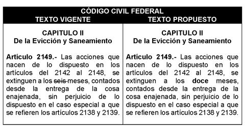 Para mejor comprensión de lo aquí planteado, se incluye el siguiente cuadro comparativo entre el texto vigente del Código Civil Federal y la propuesta de reforma: