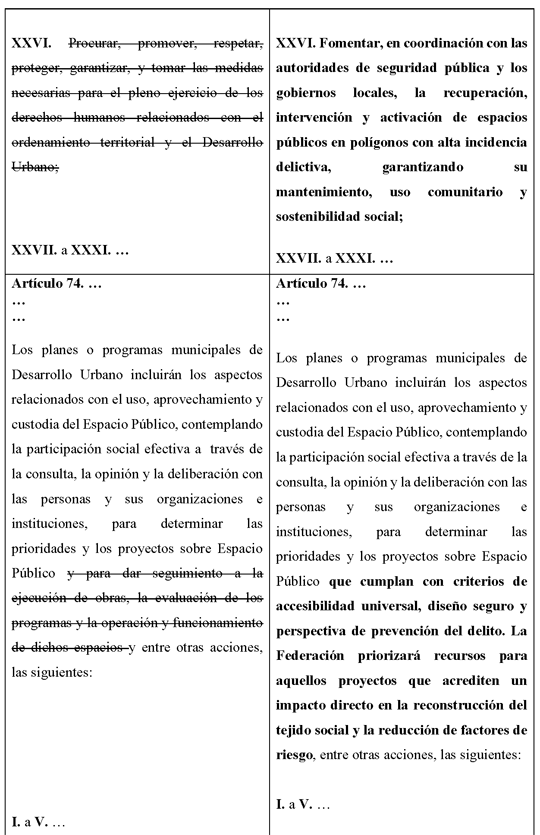 Por los antecedentes expuestos y el problema ya planteado, presento el siguiente cuadro comparativo donde se expone el texto actual y la propuesta de reforma de la Ley General de Asentamientos Humanos, Ordenamiento Territorial y Desarrollo Urbano.