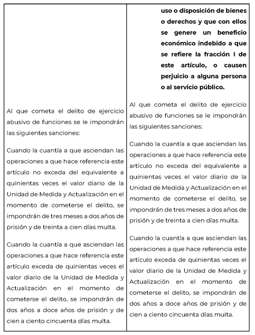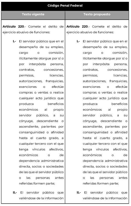 6. Que, si bien el Código Penal Federal contempla el delito de ejercicio abusivo de funciones, su redacción vigente resulta insuficiente para sancionar de manera clara y efectiva aquellas conductas en las que, sin mediar necesariamente la entrega directa de dádivas, se utilizan las atribuciones públicas como mecanismo de presión para obtener beneficios económicos indebidos o causar perjuicio a las personas o al servicio público.