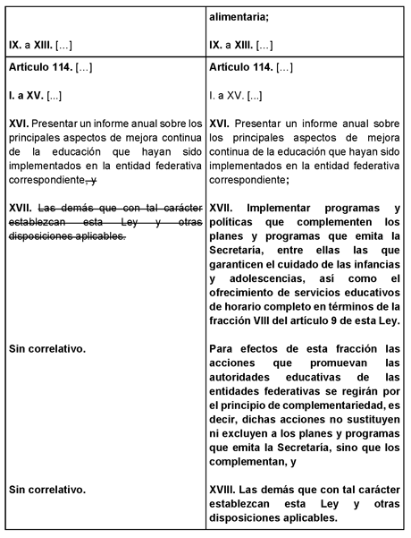Único. Se reforma el artículo 9 y el artículo 114; y se adiciona un segundo párrafo al artículo 3 y una fracción XVIII al artículo 114; todos de la Ley General de Educación, para quedar como sigue: