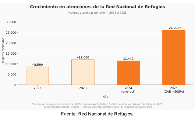 A esto se suma que el presupuesto ha llegado tarde cuatro años consecutivos, esos retrasos obligan a los refugios a reducir turnos, diferir pagos al personal o recortar servicios esenciales como atención psicológica, acompañamiento jurídico y seguridad en las instalaciones.5 Cuando eso pasa, la puerta del refugio no se cierra físicamente, pero sí operativamente.