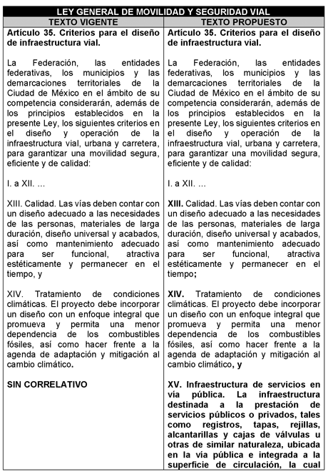 Decreto por el que se reforman las fracciones XIII y XIV y se adiciona una fracción XV al artículo 35 de la Ley General de Movilidad y Seguridad Vial, en materia de prevención de riesgos derivados de registros, tapas y alcantarillas deterioradas en calles y banquetas