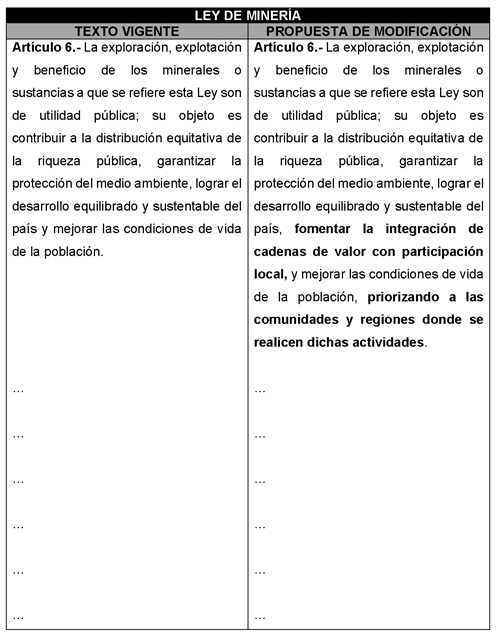 El que suscribe, diputado federal Gerardo Villarreal Solís , integrante del Grupo Parlamentario del Partido Verde Ecologista de México de la LXVI Legislatura de la Cámara de Diputados del honorable Congreso de la Unión, con fundamento en los artículos: 71, fracción II, de la Constitución Política de los Estados Unidos Mexicanos; 6, numeral 1, fracción I, 77 y 78 del Reglamento de la Cámara de Diputados, somete a consideración de esta soberanía la presente iniciativa con proyecto de decreto por el que se reforma el primer párrafo del artículo 6 de la Ley de Minería, en materia de participación local en las cadenas de valor y desarrollo regional , al tenor de la siguiente:
