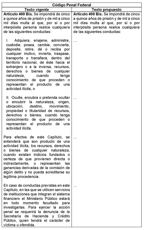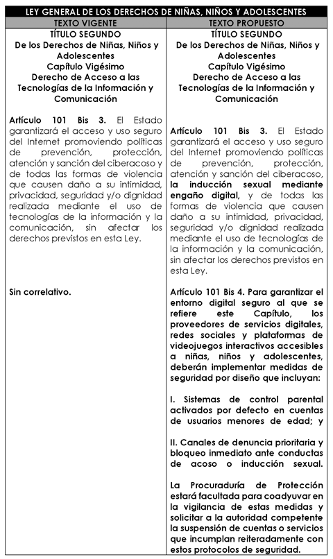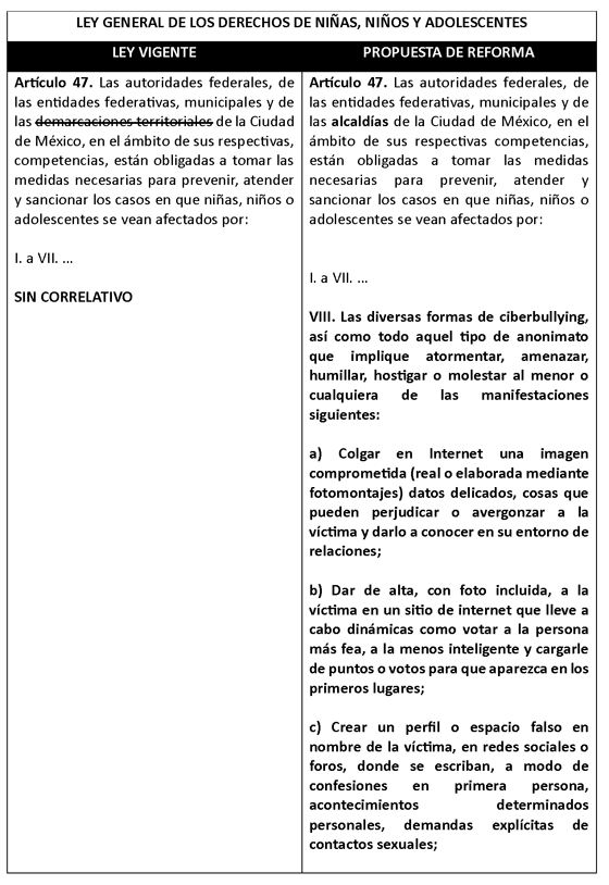Con el fin de hacer más claro lo planteado por este instrumento legislativo, presento el siguiente cuadro comparativo entre el texto legal vigente y la propuesta de reforma: