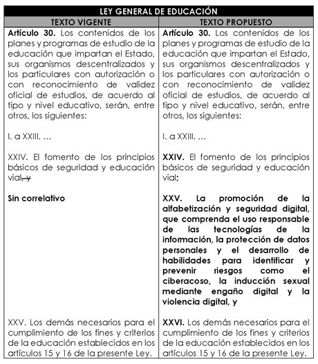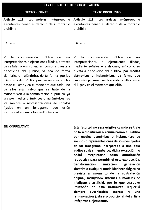 Para mayor entendimiento de lo aquí planteado, se presenta el cuadro comparativo entre el texto vigente de la ley y la propuesta de modificación: